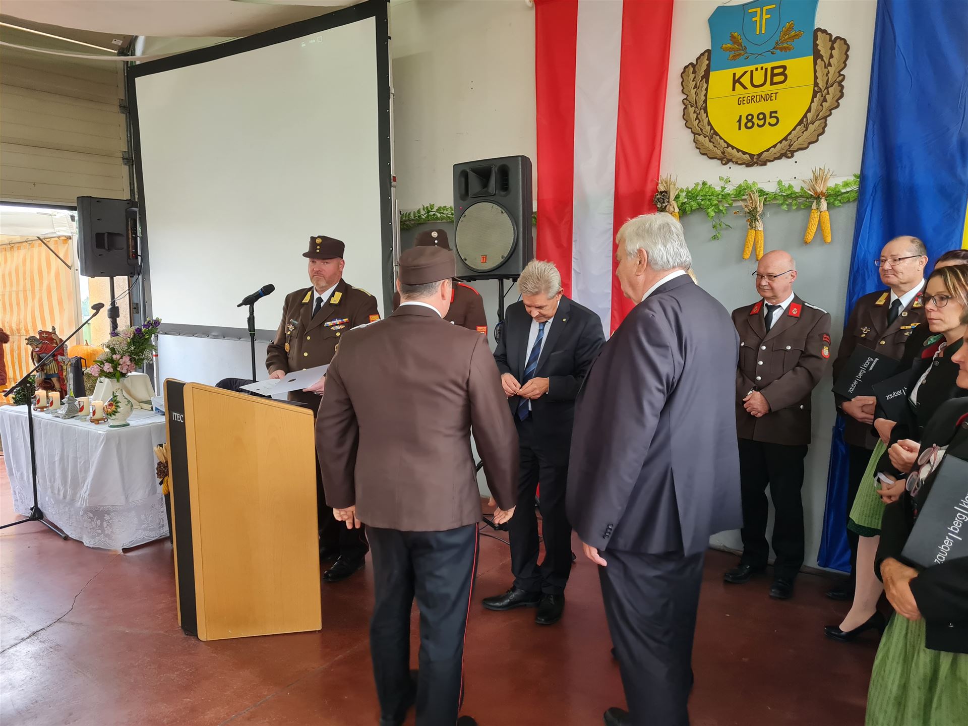 Am Nationalfeiertag durften wir die Fahrzeugsegnung unserer Nachbarfeuerwehr Küb mit einer Delegation von 7 Mitgliedern besuchen.