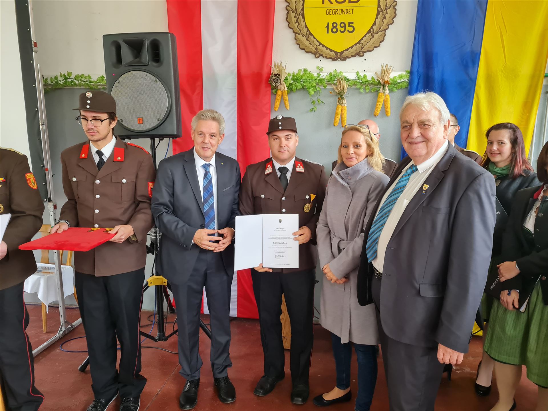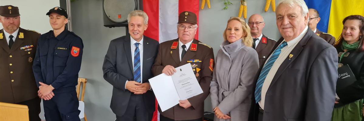 Bei dieser Gelegenheit wurden 2 unserer Kammeraden für ihre langjährige Tätigkeit vom niederösterreichischen Landesfeuerwehrverband geehrt. HBM Elmar Riegler erhielt das Ehrenzeichen für 25-jährige Tätigkeit und EOBI Franz Draxler das Ehrenzeichen für 50-jährige Tätigkeit im Feuerwehrwesen. Wir gratulieren auch auf diesem Wege nochmals recht herzlich.